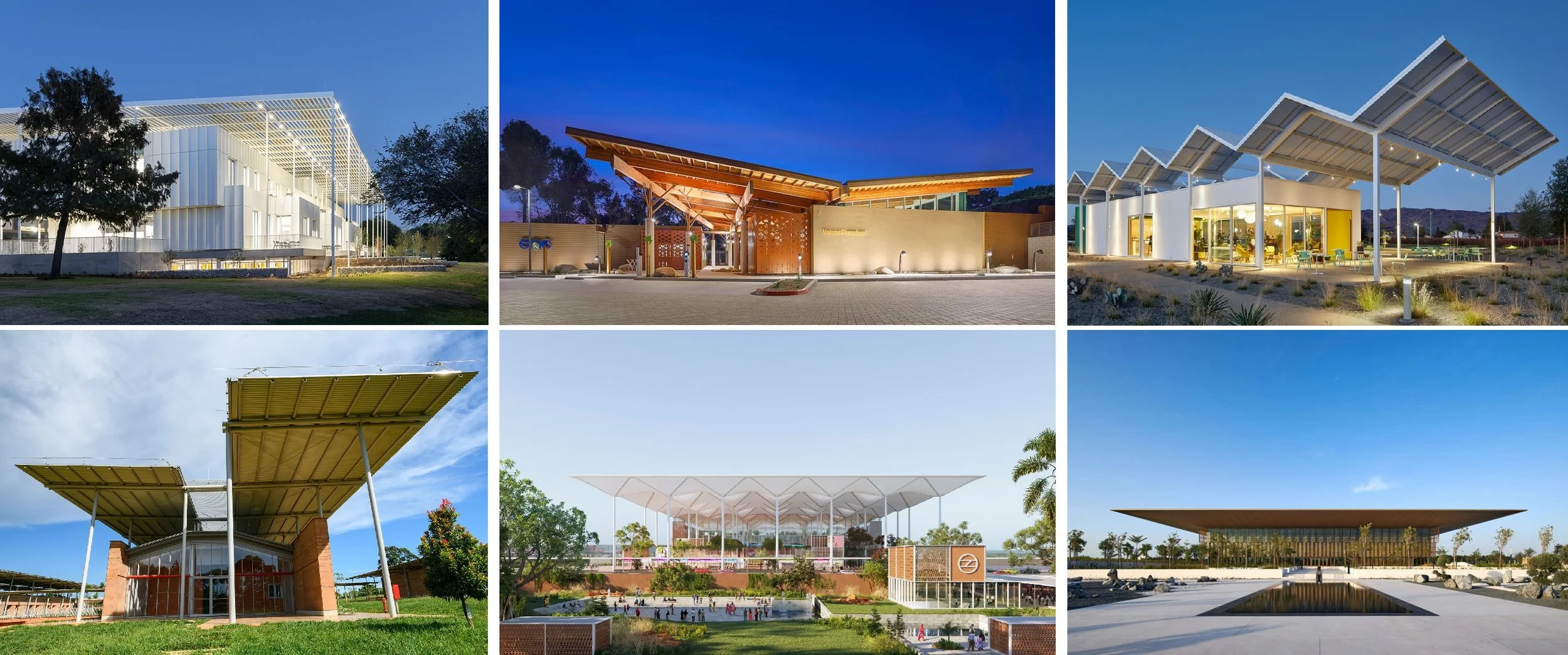 A few years ago I christened “The Big Roof” as a new style for signature public buildings. The Big Roof is an expressive environmental feature, providing shade and a greater area for solar panels. Often the roof is formally detached from the main body of the building, with its own structure. Here are some newer examples confirming the trend.